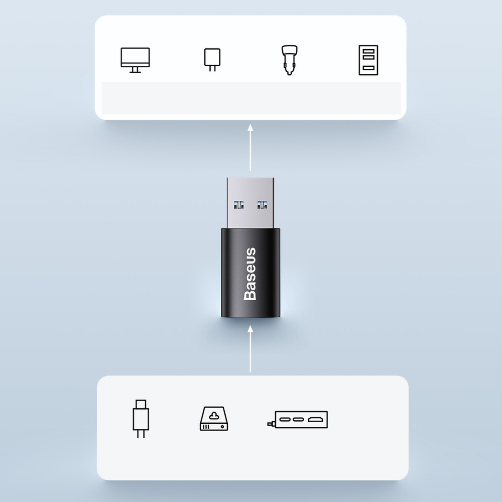 Manufactured by Baseus, a small USB 3.1 to USB Type C adapter. A practical adapter made of high quality materials that allows you to connect a number of accessories with a USB Type C plug to an ordinary USB port.