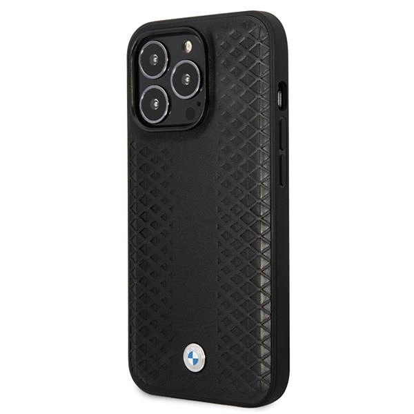 BMW Kožený kryt Diamond Pattern pro iPhone 14 Pro - černý