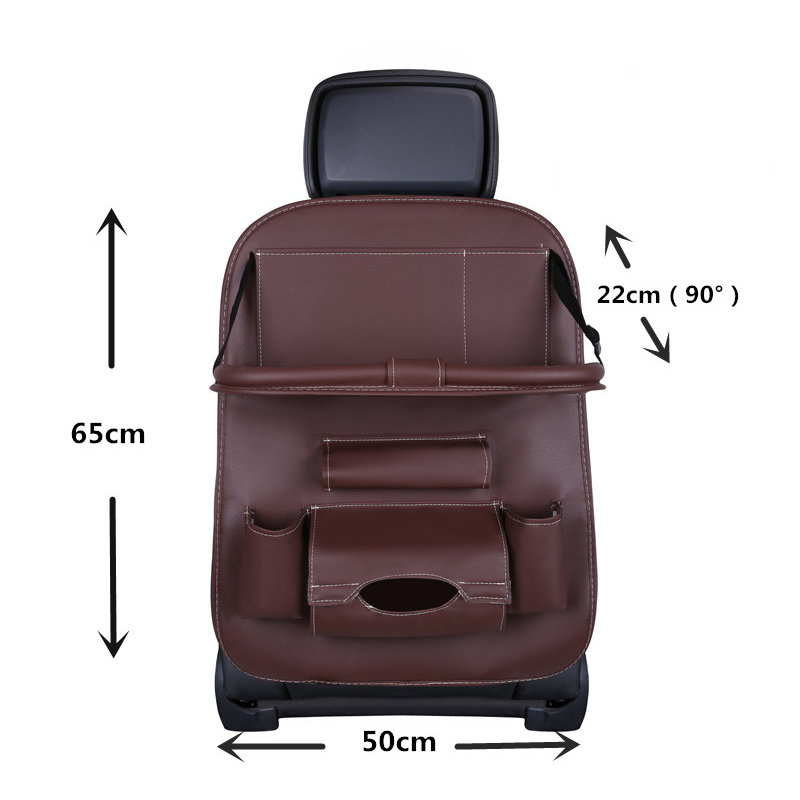 The organizer is made of a durable, waterproof material that will not be damaged or soaked. You can easily clean it with a damp cloth, because the eco-leather does not absorb dirt. But that's not all. The shelf, which can be used in two positions, can support a weight of up to 15 kg. Thanks to this, you can set anything you want on it, for example drinks that are necessary while traveling.
