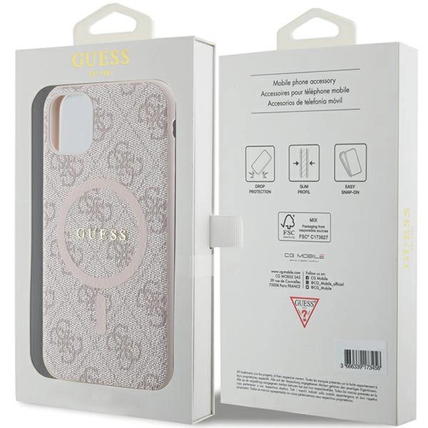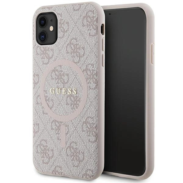 Guess GUHMN61G4GFRP iPhone 11 6,1" / Xr růžové/růžové pevné pouzdro 4G Collection Leather Metal Logo MagSafe