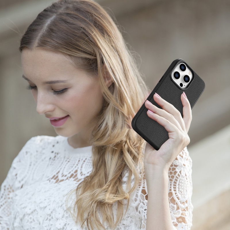 iCarer Litchi Premium Leather Case magnetic leather phone case with MagSafe