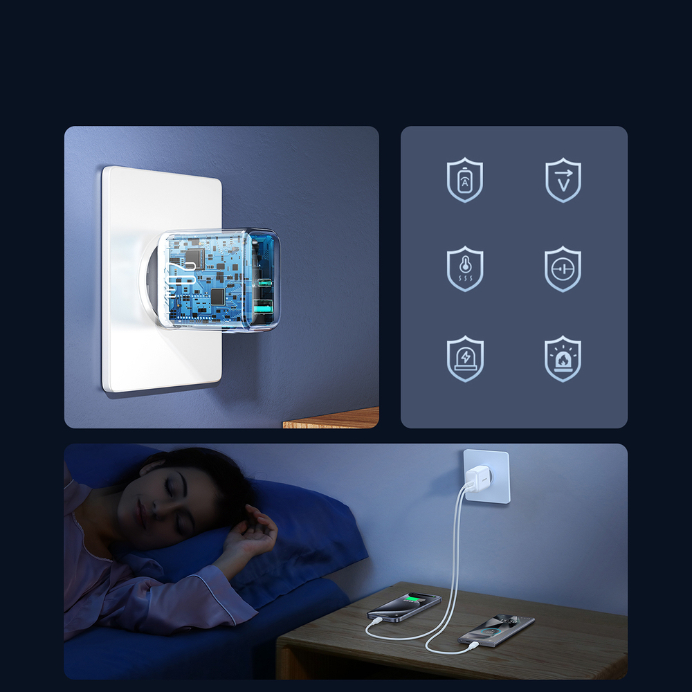 Joyroom JR-TCF21 allows you to charge two devices at the same time, which is extremely practical in everyday use. Thanks to the USB-C and USB-A ports, you can connect two devices to it at the same time, which eliminates the need to have several chargers. This is an ideal solution for families, couples or people with more than one mobile device.