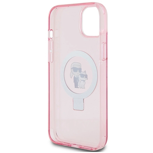 Karl Lagerfeld KLHMP15SHMRSKCP iPhone 15 6,1" růžové/růžové pevné pouzdro Ring Stand Karl&Choupette MagSafe