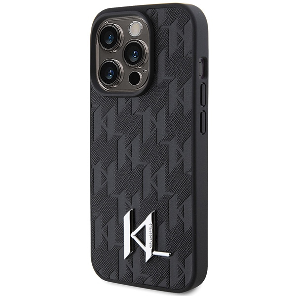 Karl Lagerfeld Leather Monogram Hot Stamp Metal Logo case for iPhone 15 Pro - black