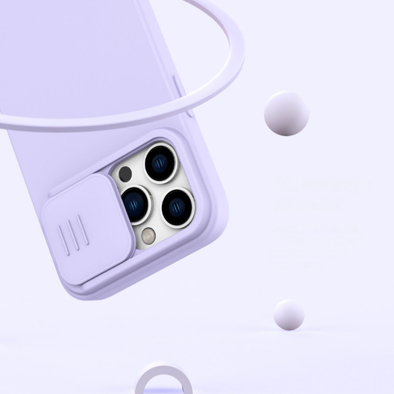 Nillkin CamShield Silky Silicone Case iPhone 14 Pro Max pouzdro s krytem fotoaparátu fialové