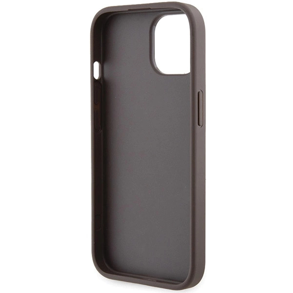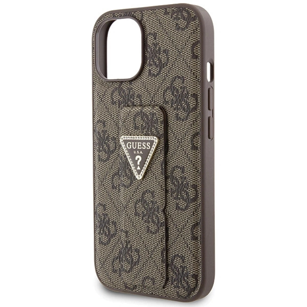Pouzdro Guess Grip Stand 4G Triangle Strass pro iPhone 15 - hnědé