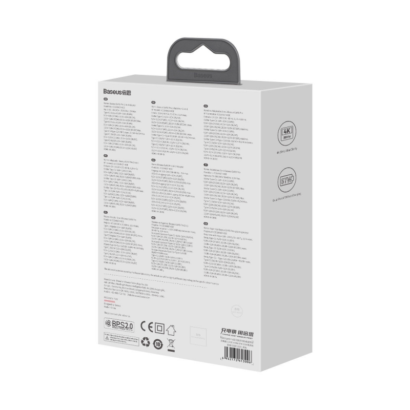 Jděte na řešení, které bude nabíjet 2 zařízení současně, pošlete obraz z počítače na velkou obrazovku a použijete soubory na flash disku! Univerzální rychlonabíječka od Baseus zvládne nabít vaše zařízení ve velmi krátké době, což z ní dělá ideální volbu při práci v kanceláři nebo doma. Celkový výkon nabíječky je celých 67W. Díky použité technologii GaN5 má nabíječka relativně malé rozměry a zvýšenou účinnost oproti klasickým nabíječkám. Nabíječku lze s úspěchem použít jako USB HUB - umožňuje přenášet data, připojovat periferní zařízení, tedy bezdrátovou klávesnici a myš, a přenášet (kopírovat) obraz v rozlišení 4K 30Hz díky využití portu USB4. Výrobce vybavil nabíječku 1,5m napájecím kabelem a 1m USB-C - USB-C kabelem ve standardu USB4.
