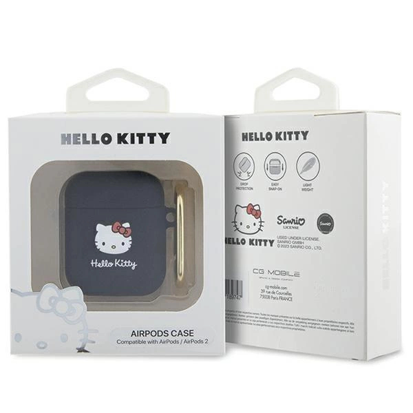 Silikonové pouzdro Hello Kitty 3D Kitty Head pro AirPods 1/2 - černé