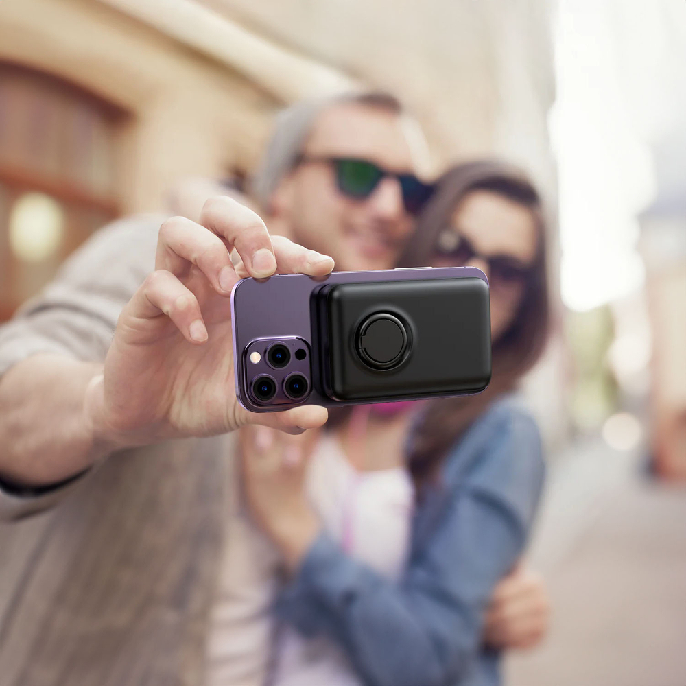 Discover the Joyroom induction powerbank with a comfortable ring stand. This is a clever 2-in-1 solution: connect the powerbank to your phone and you will gain additional support and stabilization. The ring allows you to comfortably hold the phone in your hand, and the stand allows you to watch videos and photos without using your hands. This inductive power bank is slim and compact. It has a comfortable capacity of 10,000 mAh. Thanks to the built-in Power Delivery technology and power up to 20 watts, it will charge your device quickly and effectively. The Joyroom JR-W050 induction power bank also allows you to charge two devices at the same time. You will find out how much energy is left in the power bank from the side LED backlight.