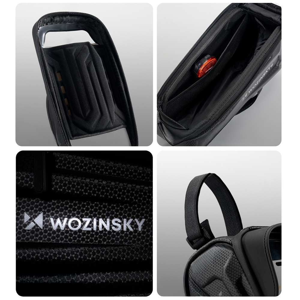 The most important advantages of the Wozinsky bicycle bag for the frame, armored, with a phone pocket, 1.7 l - black: