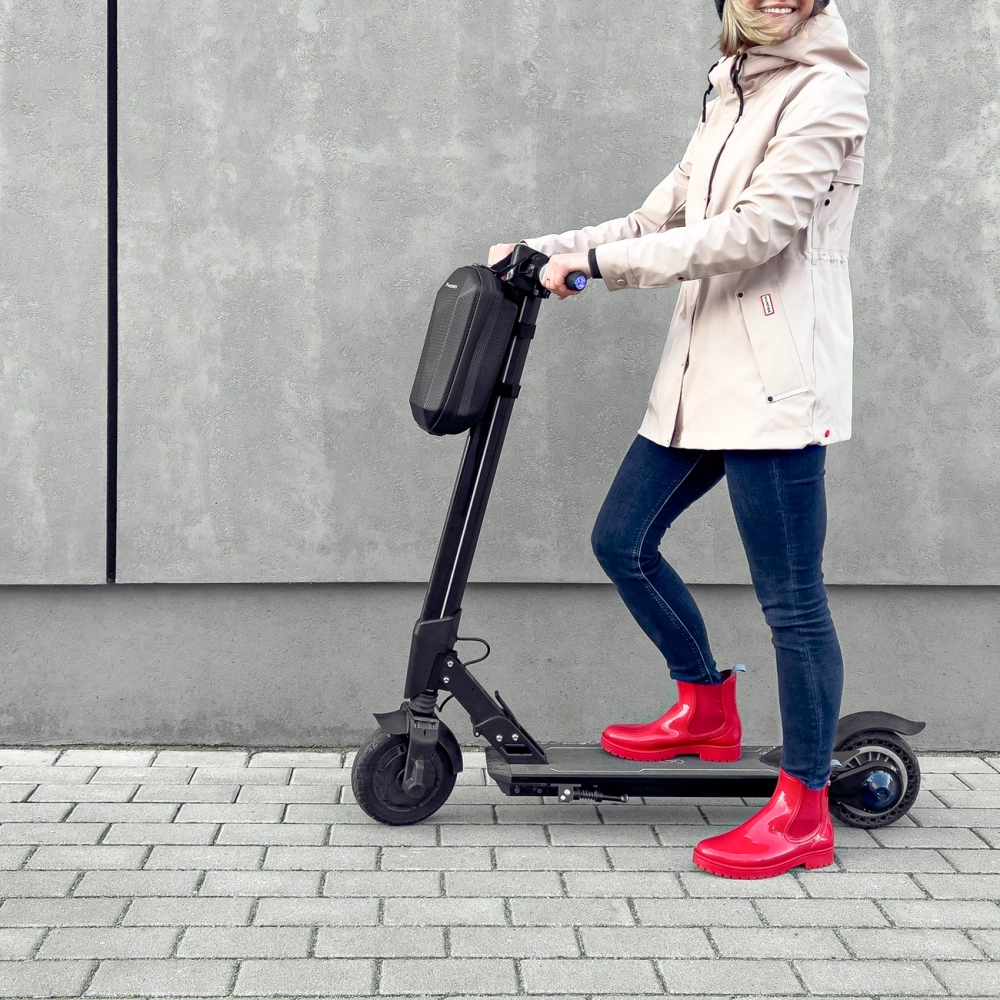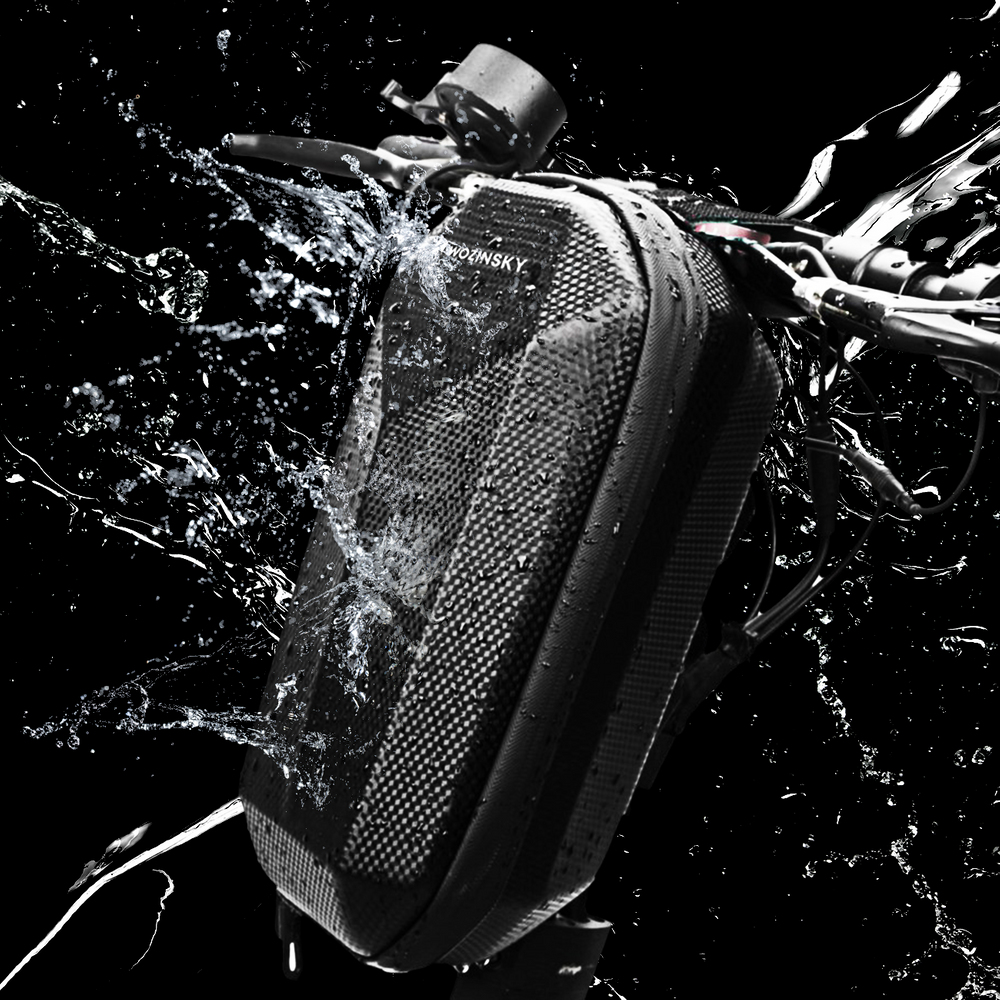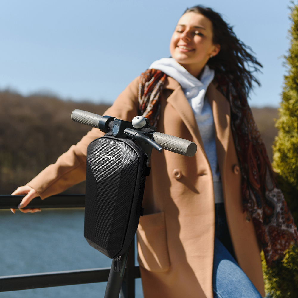 The handlebar bag of the Wozinsky WSB2BK scooter is made of EVA material - a waterproof, wear-resistant and scratch-resistant material. So it will protect your things from getting wet and dirty . The bag has no visible seams and is extremely easy to clean . Just wipe it with a damp cloth.